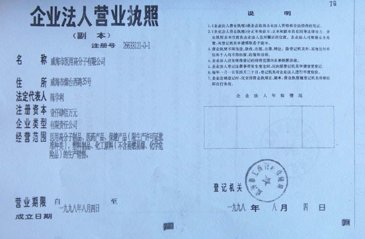 企業進行改制,以實際出資的1400萬元作為注冊資本,發起設立威海市醫用高分子有限公司,為企業發展注入新活力,使其煥發新生機。