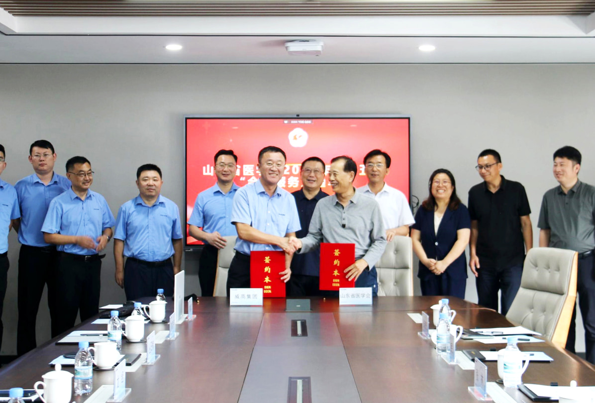 8月21日下午,山東省醫學會與威高集團在威高總部會議室簽訂合作框架協議。山東省醫學會副會長張林、威高集團總裁龍經代表雙方簽署協議,山東省醫學會副會長王愛杰向威高集團副總裁叢日楠授予會員單位會牌。山東省醫學會組織部主任張曉寧、科技發展部主任郇正峰,威海市醫學會會長鞠立民、辦公室主任邱建東,以及威高集團研發、銷售、市場有關負責同志參加活動。